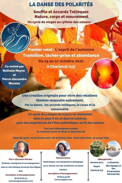 Proposition d'un nouveau cycle de stage Sophrologie, Accords Toltèques et Danse Intuitive, au rythme des saison...